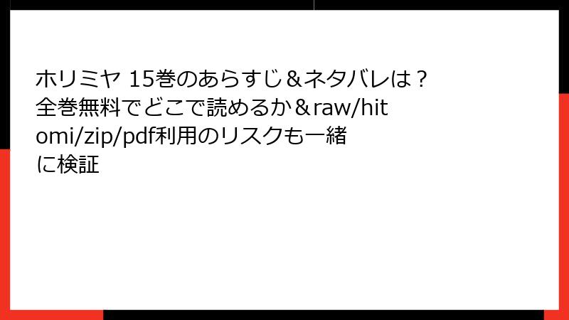 『ホリミヤ』15巻を海賊版で読むと、**最悪の場合**:
