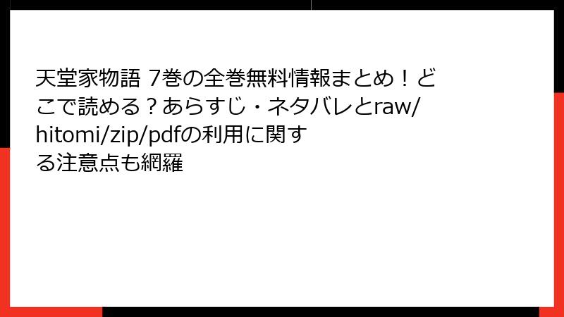 - 『天堂家物語』を海賊版(raw/hitomi/zip/pdf/漫画バンク)で読むとどうなる? 知っておくべき5大リスク