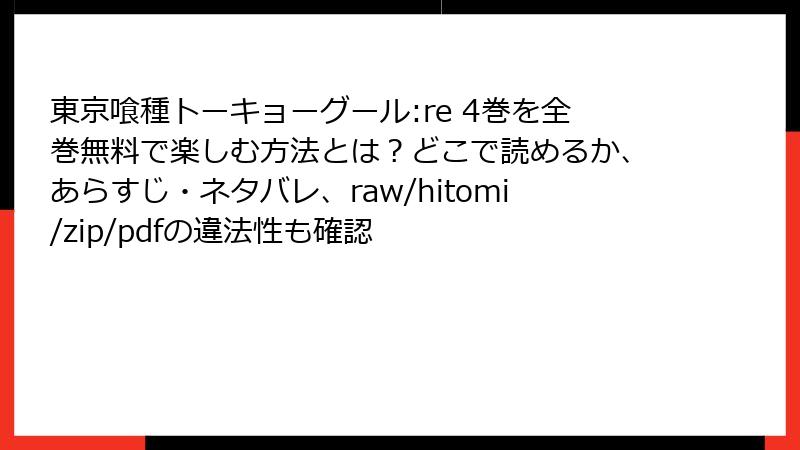 東京喰種:reを海賊版サイト(raw/hitomi/zip/pdf/漫画バンク)で読む本当のリスク:法的・倫理的・技術的トリプルパンチ