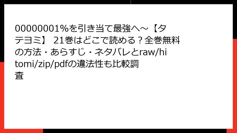 00000001%を引き当て最強へ~【タテヨミ】 21巻はどこで読める?全巻無料の方法・あらすじ・ネタバレとraw/hitomi/zip/pdfの違法性も比較調査 00000001%を引き当て最強へ~【タテヨミ】 X Facebook はてブ Pocket LINE コピー 2025.11.16