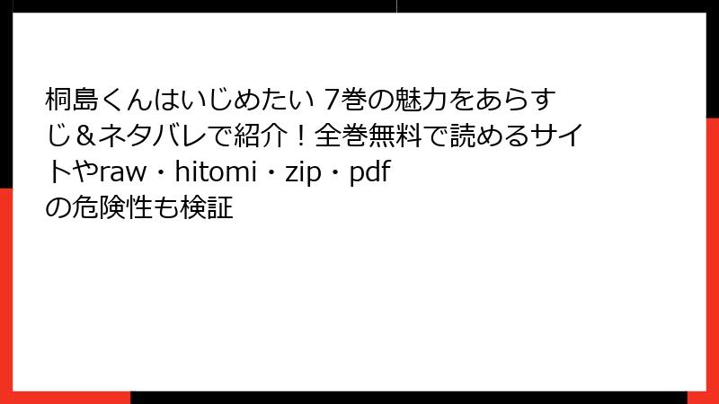 『桐島くんはいじめたい』を海賊版(raw・hitomi・漫画バンク等)で読むと、本当にヤバい理由