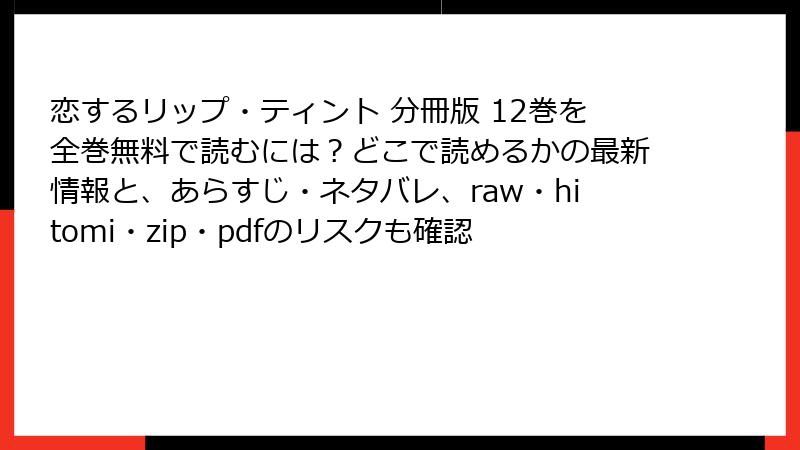 最近「恋するリップ・ティント 分冊版12巻」を無料で読もうとして、raw系サイトやhitomi、漫画バンク、zip・pdf配布サイトを検索している人がすごく多いみたいですね…。