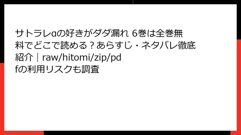 推しが尊すぎて「今すぐ6巻読みたい!」「ネタバレ回避したい!」という理由で、つい「漫画 raw」「hitomi サトラレ」「漫画バンク」「◯◯ zip」で検索してしまう気持ち、めっちゃわかります。でも、正直に言います。**海賊版サイトを使うと、あなたのスマホ・PC・お金・推しそのものが傷つく確率が異常なほど高い**です。2025年現在も海賊版は進化し続けていますが、逆に罠も巧妙になっています。以下、リアルな被害例を交えながら徹底解説します。