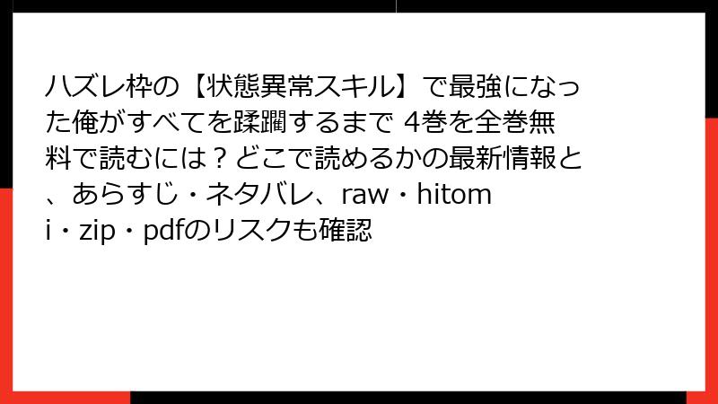ハズレ枠の【状態異常スキル】で最強になった俺がすべてを蹂躙するまで 4巻を全巻無料で読むには?どこで読めるかの最新情報と、あらすじ・ネタバレ、raw・hitomi・zip・pdfのリスクも確認