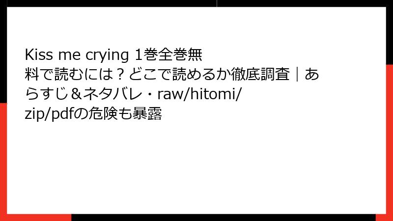 Kiss Me Cryingを海賊版サイト(raw/hitomi/漫画バンク系)で読む前に絶対に知っておくべきリスク完全ガイド