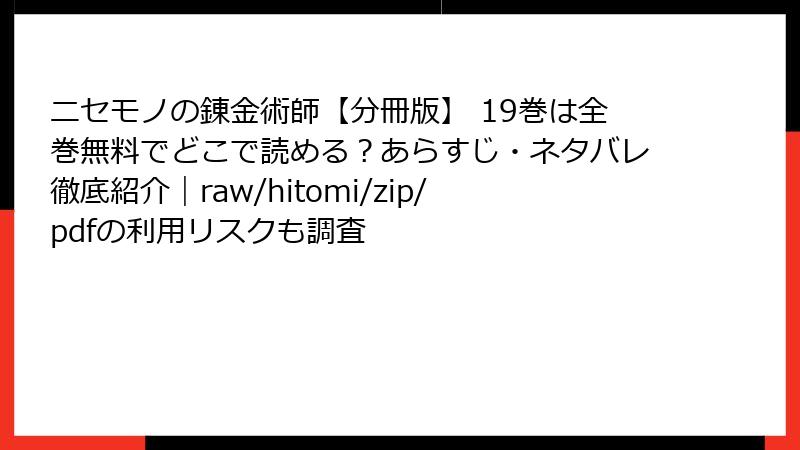 ニセモノの錬金術師【分冊版】 19巻の電子書籍配信情報