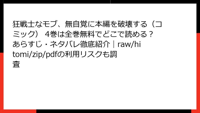 モブ破壊劇『狂戦士なモブ』4巻は、ギルド結成が痛快。双葉社配信で、電子書籍のモンスターコミックス版。2025年現在、めちゃコミックで評価4.5。