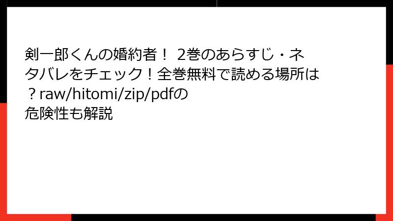 剣一郎くんの婚約者! 2巻のあらすじ・ネタバレをチェック!全巻無料で読める場所は?raw/hitomi/zip/pdfの危険性も解説