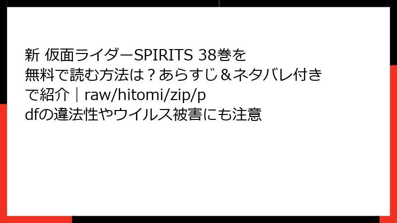 新 仮面ライダーSPIRITS 38巻を海賊版サイトで読むリスク:違法行為の落とし穴と隠れた脅威