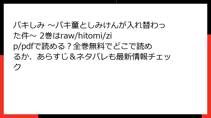バキしみ ~バキ童としみけんが入れ替わった件~ 2巻はraw/hitomi/zip/pdfで読める?全巻無料でどこで読めるか、あらすじ&ネタバレも最新情報チェック
