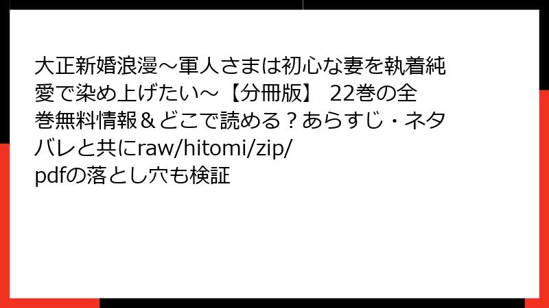 大正新婚浪漫~軍人さまは初心な妻を執着純愛で染め上げたい~ 22巻 完全ネタバレ大解剖