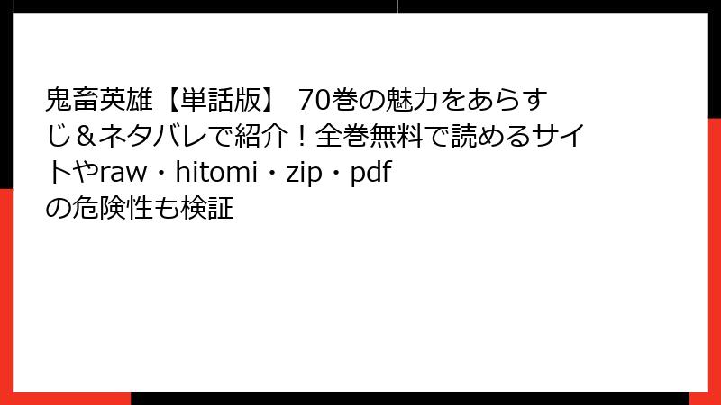 - 鬼畜英雄 単話版 70巻の電子書籍配信ガイド:主要サービスでどこまで読める?