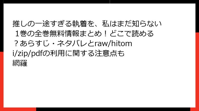 海賊版を利用することは、作者の努力を無視した行為です。「推しの一途すぎる執着を、私はまだ知らない」のような作品は、漫画家が時間をかけて生み出したものです。海賊版で読むことで、作者の収入を奪い、モチベーションを低下させる可能性があります。SNSなどで海賊版を推奨する行為は、社会的な非難を浴び、友人や職場での信頼を失うリスクもあります。