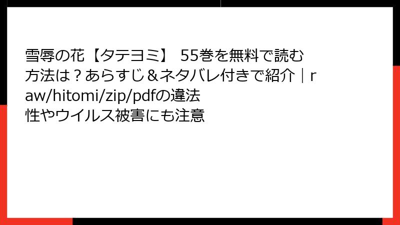 皆さん、こんにちは! 漫画ファン歴20年の管理人です。今日は、人気BL復讐劇『雪辱の花【タテヨミ】』を、海賊版サイトで無料で読もうと考えている方へ向けた注意喚起記事をお届けします。この作品は、snob先生の美麗なフルカラー作画とドラマチックなストーリーでファンを魅了していますが、正規ルート以外で楽しむのはおすすめできません。raw、hitomi、zip、pdf、漫画バンクなどの海賊版サイトは、一見お得に見えますが、実は多大なリスクを伴います。2025年現在、海賊版対策が強化されており、ユーザー側も無関係ではいられません。以下では、法的・セキュリティ・品質・倫理的観点から詳しく掘り下げます。安全第一で、公式サイトやアプリで楽しむことを強く推奨します!