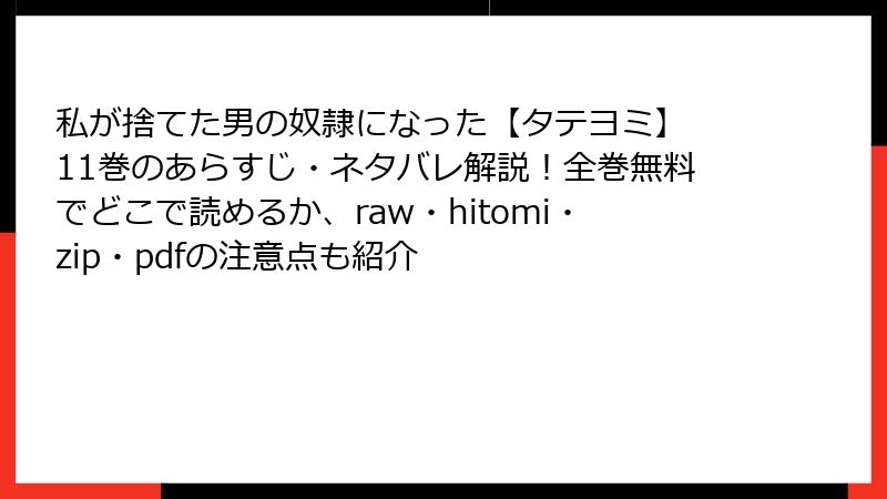 こんにちは、漫画ファン向けのブログへようこそ! 今日は、人気ダークBL漫画『私が捨てた男の奴隷になった』を、raw、hitomi、zip、pdf、漫画バンクなどの海賊版サイトで読むことのリスクについて、詳しく掘り下げます。これらのサイトは無料でアクセスしやすく魅力的に見えますが、背後には深刻な危険が潜んでいます。法的問題からセキュリティの脅威まで、利用者が直面する可能性のあるトラブルを、具体例を交えて解説。海賊版の甘い誘惑に負けないよう、しっかり理解しましょう。ネタバレなしでリスクに焦点を当てますので、安心してお読みください。