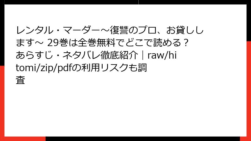 - レンタル・マーダー~復讐のプロ、お貸しします~ 29巻