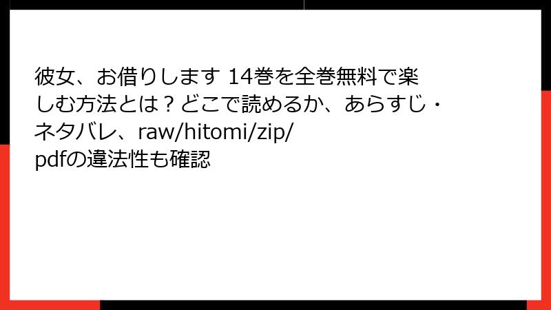 彼女、お借りします 14巻を全巻無料で楽しむ方法とは?どこで読めるか、あらすじ・ネタバレ、raw/hitomi/zip/pdfの違法性も確認