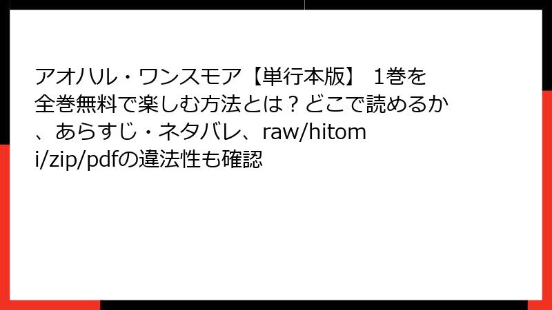 でも、正直に言います。raw、nhentai、hitomi、漫画バンク、MangaRaw、センマンガ、zip・rar・pdf配布サイト……これらで「アオハル・ワンスモア」を読むのは、今の時代マジでリスクが高すぎます。