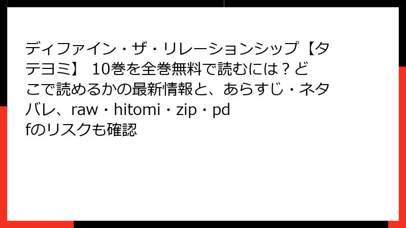 【警告】ディファイン・ザ・リレーションシップを「raw・hitomi・漫画バンク・zip・pdf」で読むと、取り返しのつかないことになります