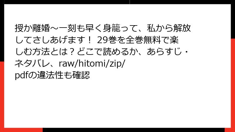 - 【警告】『授か離婚~一刻も早く身籠って、私から解放してさしあげます!』をraw・hitomi・漫画バンク・zip・pdfなどの海賊版サイトで読むと、取り返しのつかないことになります