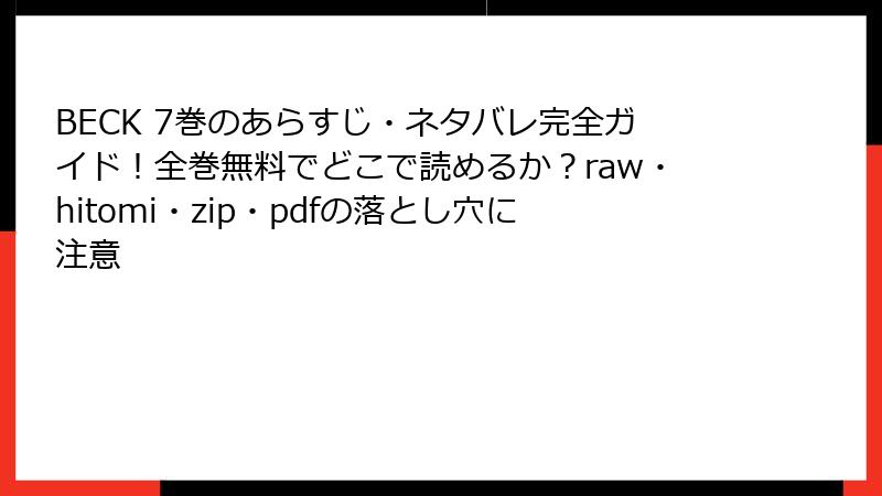 3. 【完全解説】BECKを「raw・hitomi・漫画バンク・zip・pdf」で読むと何が起こる?海賊版のリアルなリスク全貌