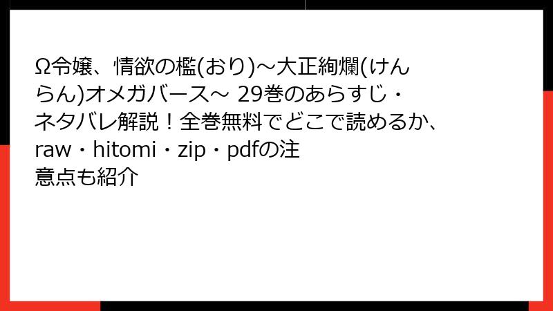 大正ロマンの華やかな世界で繰り広げられる禁断のオメガバースBL。29巻(連載29話相当)は、天花寺家のお家騒動が終結した後の新生活を描きつつ、愛と陰謀の新章を鮮やかに開幕させます。瑛司と紗代の絆が深まる中、社会の闇が忍び寄る展開は息をのむほど。今回は、ネタバレ全開でストーリーの核心を深掘り! 重要なイベントからキャラクターの心の動きまで、時系列で追いかけます。未読の方はここでストップを。読み進めれば、情欲の檻が再び軋む理由がきっとわかるはずです。