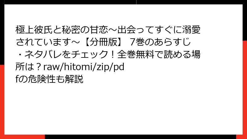 極上彼氏と秘密の甘恋~出会ってすぐに溺愛されています~【分冊版】 7巻のあらすじ・ネタバレをチェック!全巻無料で読める場所は?raw/hitomi/zip/pdfの危険性も解説