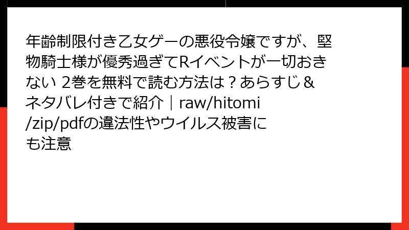 年齢制限付き乙女ゲーの悪役令嬢ですが、堅物騎士様が優秀過ぎてRイベントが一切おきない 2巻を無料で読む方法は?あらすじ&ネタバレ付きで紹介|raw/hitomi/zip/pdfの違法性やウイルス被害にも注意
