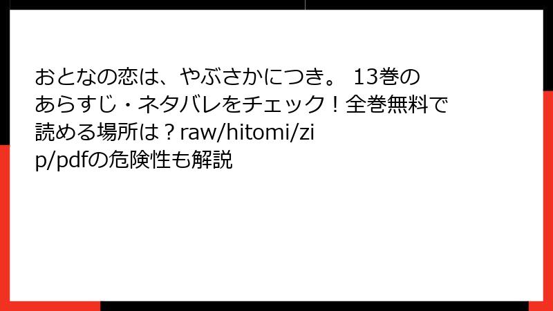 - 【絶対にやめて】「おとなの恋は、やぶさかにつき。」をraw・漫画バンク・hitomi・zip・pdfで読むと起こること──私が実際に味わった地獄を全部晒します