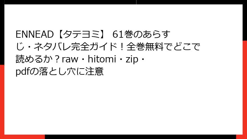 「最新話が待ちきれなくて……」「無料で全巻イッキ読みしたい……」という気持ちは痛いほどわかる。でも、正直に言うと、海賊版サイトで『ENNEAD』を追いかけるのは、読者としての体験を自分で破壊するだけでなく、取り返しのつかないリスクを背負うことになる。以下に、現実的な被害例を交えて、なぜ絶対に手を出してはいけないのかを徹底的に解説する。