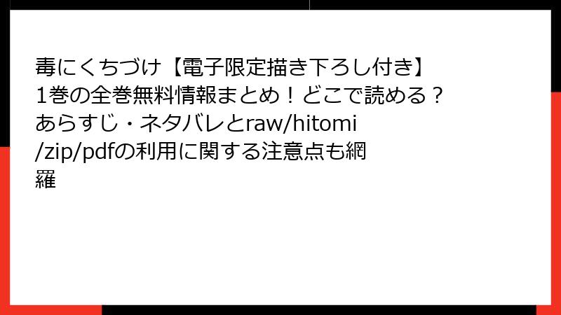 - 毒にくちづけ【電子限定描き下ろし付き】 1巻