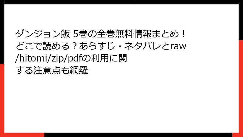 ダンジョン飯をraw/hitomi/zip/pdf/漫画バンクなどの海賊版サイトで読むリスク:知っておくべき深刻な危険性
