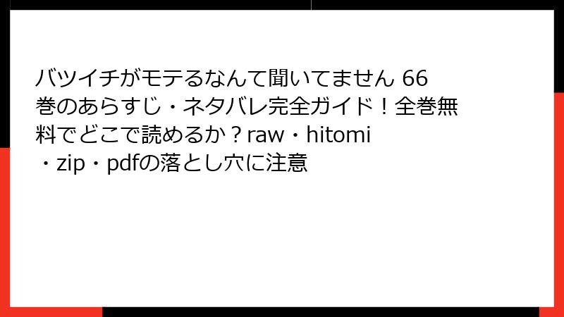 こんにちは、マンガ好きのブロガーです! 今回は、根津慶子先生の人気コミック『バツイチがモテるなんて聞いてません』の66巻について、詳しいあらすじをネタバレ満載でお届けします。この作品は、35歳で離婚した主人公・小野和葉が、再び恋の渦に巻き込まれながら自分らしさを見つけていく大人のラブコメディ。66巻では、転職後の新生活がスタートし、過去の恋人との再会や新キャラとの「お試し」交際が絡み合う、ドキドキの展開が満載です。読み進めながら、和葉の成長に共感必至ですよ!