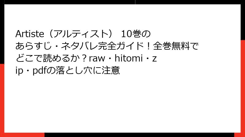 人気漫画『Artiste(アルティスト)』の10巻を楽しみたい気持ちはわかりますが、raw、hitomi、zip、pdf、漫画バンクなどの海賊版サイトを利用するのは、さまざまな深刻なリスクを伴います。これらのサイトは違法にアップロードされたコンテンツを提供しており、利用者は知らず知らずのうちにトラブルに巻き込まれる可能性が高いのです。この記事では、そんな海賊版サイトの利用に伴うリスクを詳しく解説します。法的問題からセキュリティの脅威まで、読み応えのある形で掘り下げていきましょう。最終的に、正規の方法で楽しむことをおすすめします。