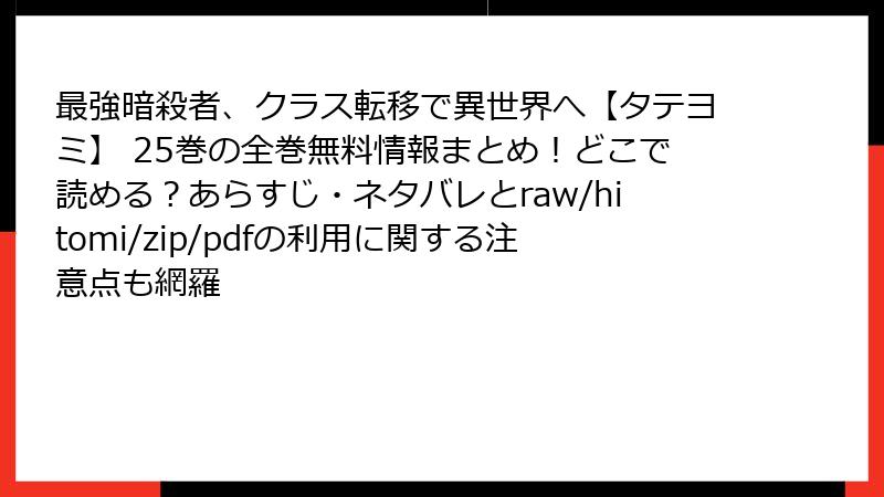 最強暗殺者、クラス転移で異世界へ【タテヨミ】 25巻の全巻無料情報まとめ!どこで読める?あらすじ・ネタバレとraw/hitomi/zip/pdfの利用に関する注意点も網羅