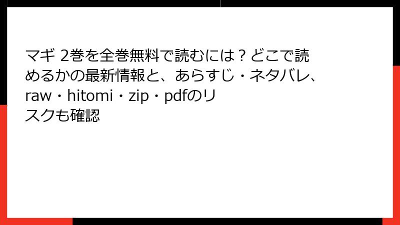 人気漫画『マギ』第2巻を、raw、hitomi、zip、pdf、漫画バンクなどの海賊版サイトで読むのは一見便利に思えますが、さまざまな深刻なリスクが伴います。この記事では、そうした違法サイト利用の危険性を詳しく解説します。法的問題からセキュリティの脅威まで、知っておくべきポイントを掘り下げます。公式ルートでの読書をおすすめする理由がわかるはずです。