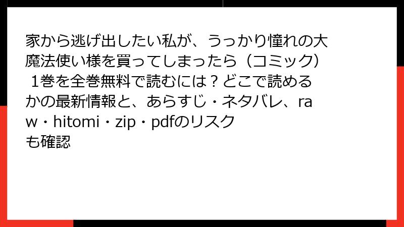 人気のファンタジーラブコメコミック、『家から逃げ出したい私が、うっかり憧れの大魔法使い様を買ってしまったら』を無料で楽しみたいと思う人は多いはず。しかし、raw、hitomi、zip、pdf、漫画バンクなどの海賊版サイトを利用するのは、さまざまな危険を伴います。これらのサイトは著作権を無視した違法アップロードが主流で、読むだけで思わぬトラブルに巻き込まれる可能性があります。この記事では、そんなリスクを法的な側面からセキュリティ、品質、倫理的な観点まで詳しく解説します。海賊版の魅力に惑わされず、正しい選択を考えるきっかけになれば幸いです。