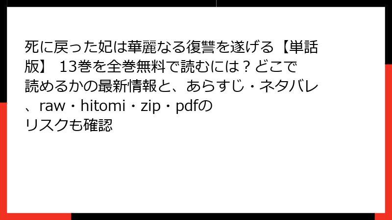 死に戻った妃は華麗なる復讐を遂げる【単話版】 13巻を全巻無料で読むには?どこで読めるかの最新情報と、あらすじ・ネタバレ、raw・hitomi・zip・pdfのリスクも確認