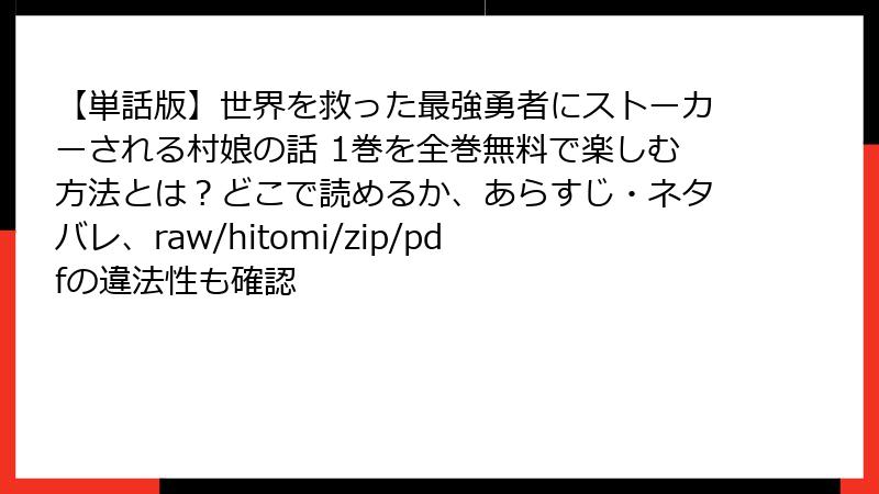 【単話版】世界を救った最強勇者にストーカーされる村娘の話 1巻を全巻無料で楽しむ方法とは?どこで読めるか、あらすじ・ネタバレ、raw/hitomi/zip/pdfの違法性も確認
