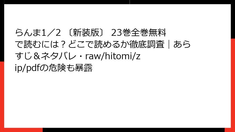 らんま1/2 〔新装版〕 23巻全巻無料で読むには?どこで読めるか徹底調査|あらすじ&ネタバレ・raw/hitomi/zip/pdfの危険も暴露