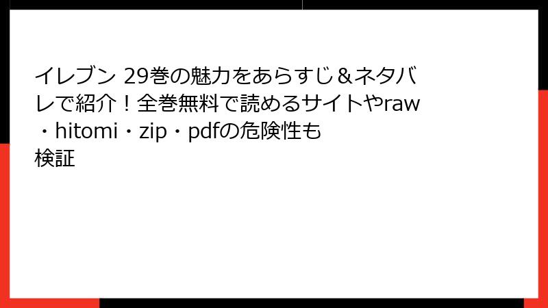 イレブン 29巻をraw/hitomi/zip/pdf/漫画バンクなどの海賊版サイトで読むリスク:法的・セキュリティの脅威を徹底解説