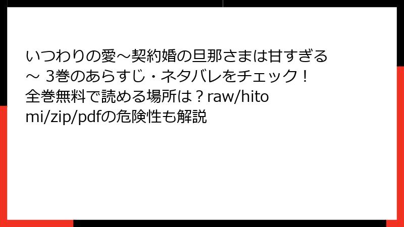 こんにちは、漫画愛好家の皆さん! 今日は、人気ロマンス漫画『いつわりの愛~契約婚の旦那さまは甘すぎる~』を、raw/hitomi/zip/pdf/漫画バンクなどの海賊版サイトで読むことのリスクについて、詳しく掘り下げてお話しします。この作品は魅力的なストーリーでファンを魅了していますが、海賊版サイトを利用するのはおすすめできません。なぜなら、さまざまな深刻なリスクが伴うからです。この記事では、法的側面からセキュリティ、倫理的な問題までを徹底的に解説。読み終わる頃には、正規ルートを選ぶ重要性がわかるはずです。注意喚起としてお読みください。