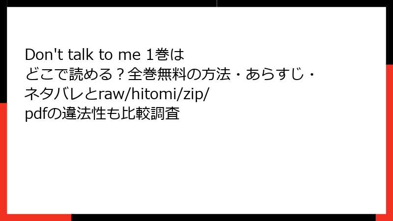 | Don’t talk to me | ○ (全巻、限定版) | ○ (全巻) | ○ (全巻) | ○ (全巻) | ○ (全巻) | ○ (全巻) | × | × |