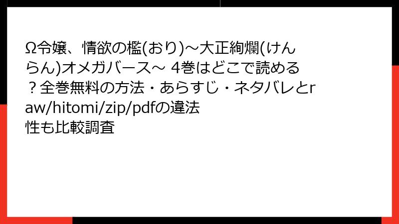Ω令嬢、情欲の檻(おり)~大正絢爛(けんらん)オメガバース~ 4巻はどこで読める?全巻無料の方法・あらすじ・ネタバレとraw/hitomi/zip/pdfの違法性も比較調査