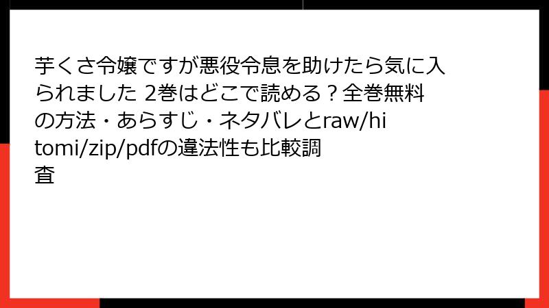 芋くさ令嬢ですが悪役令息を助けたら気に入られました 2巻をraw/hitomi/zip/pdf/漫画バンクなどの海賊版サイトで読むリスク