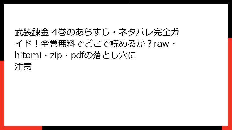 結論として、海賊版サイトの利用は避け、正規のプラットフォームで「武装錬金」を楽しむのが賢明です。リスクを理解し、責任ある選択をしましょう。