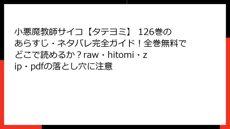 海賊版の漫画は、画質が悪く、ページ欠損や翻訳ミスが多いです。『小悪魔教師サイコ【タテヨミ】』の126巻のように詳細なストーリーを楽しむ場合、ネタバレや偽物の混入で満足度が低下します。また、ダウンロードしたzipファイルが空っぽだったり、追加料金を要求する詐欺も横行。