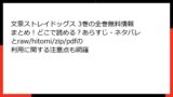 - LINEマンガ:全巻配信中。デジタル版限定特典付き巻が多く、無料話やコイン還元キャンペーンを活用可能。