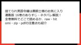 海賊版サイトの漫画は画質が悪く、ページ欠損や誤訳が頻発します。raw形式では日本語訳がなく、理解しにくいです。また、サイト自体が突然閉鎖されたり、広告だらけで読みにくいです。zipやpdfはウイルス混入のほか、更新が遅く、最新巻がすぐ入手できない。結果として、物語の楽しみを損ない、ストレスが増大します。正規ルートなら高品質で安心ですが、海賊版はこうしたデメリットが大きいです。