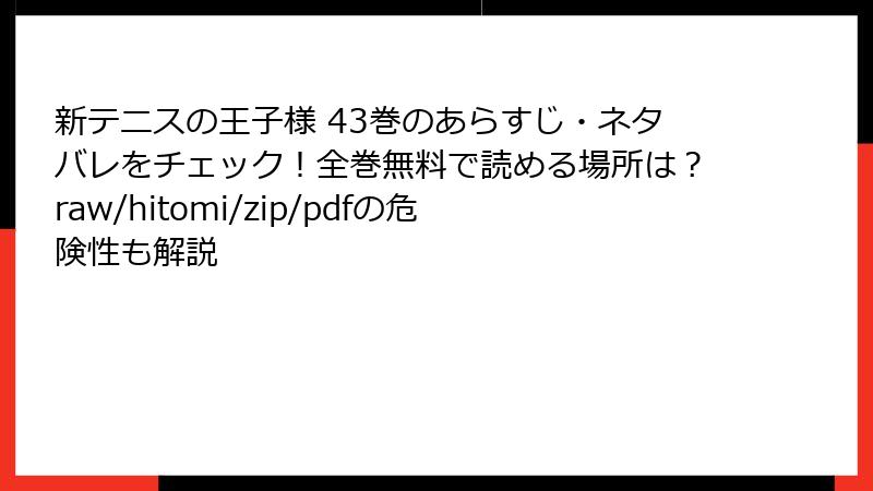 『新テニスの王子様』のような人気漫画を、海賊版サイト(例: raw, hitomi, zip, pdf, 漫画バンクなど)で読むのは一見手軽ですが、深刻なリスクを伴います。この記事では、法的側面からセキュリティ、プライバシー、倫理的問題までを詳しく解説します。海賊版の利用は避け、正規の手段を選ぶことを強くおすすめします。